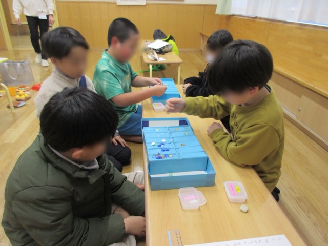 大会名やルールを子どもたち自身で決め、マンカラ大会を開催しました。対戦前には「よろしくお願いします!」と挨拶し、対戦後には握手を交わすなど、マナーを守ってゲームを楽しみました。学校や学年の異なる小学生たちが最後まで真剣に勝負を繰り広げ、児童館ならではの大会となりました。
